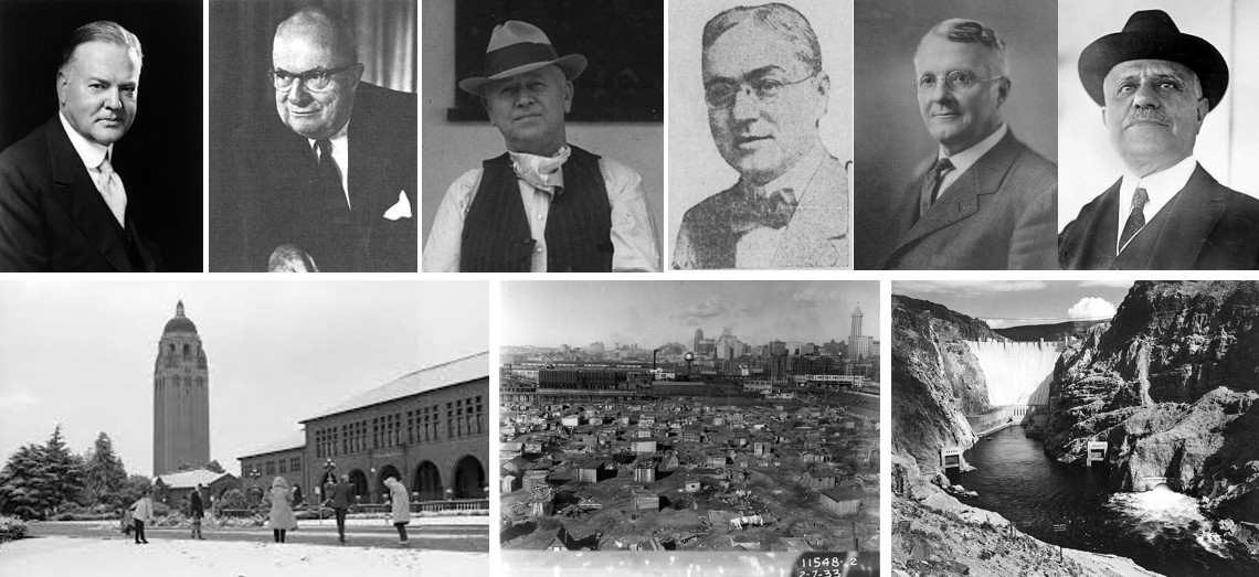 Bottom line: Hoover Institution & Tower, Hooverville, Hoover Dam