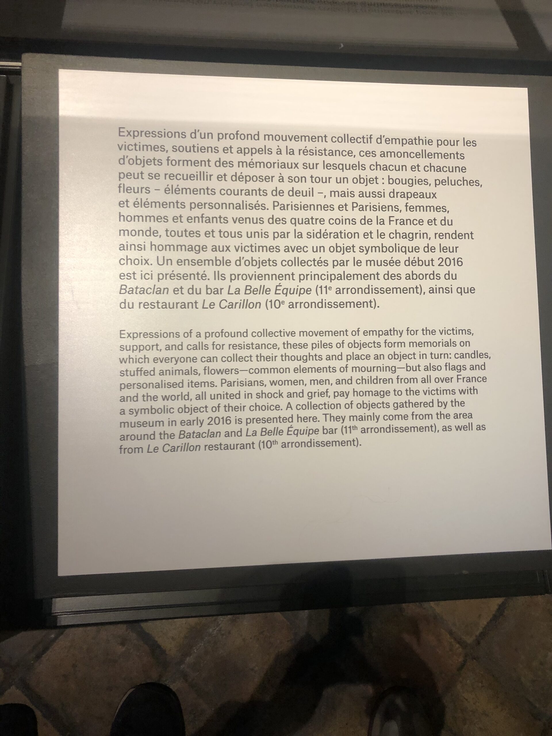 Dimanche, autre émotion, j’ai découvert l’exposition du Musée Carnavalet. J’ai cru comprendre qu’un nouveau musée était en projet, et je découvre le projet de Musée-Mémorial du Terrorisme. En attendant, voici quelques photos prises dimanche et comme il y est question de Street Art, je suis allé revoir ce matin le travail tout aussi émouvant de Morèje sur les victimes de Charlie.